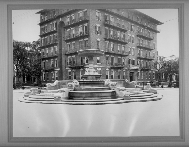 |  Kenan Fountain, with the Carolina Apartments in the background, 1930s |